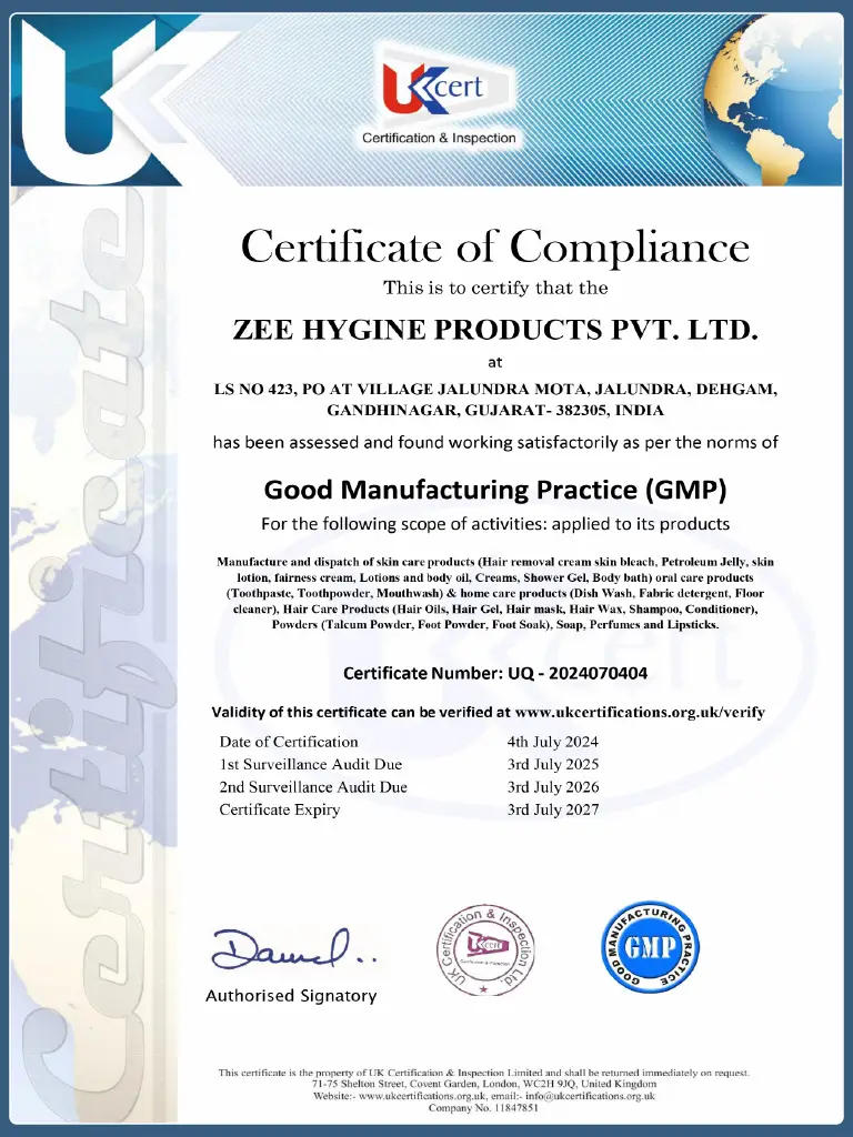 Established in 1994, Zee Hygine Products Pvt. Ltd. is one of India’s most experienced third-party manufacturers in the cosmetics, personal care, and ayurvedic industry. With over 30 years of legacy, we specialize in developing and manufacturing customized solutions across a wide range of categories including Skin Care, Hair Care, Baby Care, Oral Care, Home Care and Herbal Care.